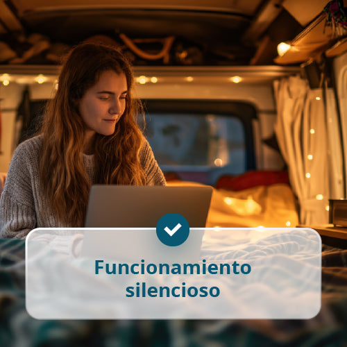 • Carcasa silenciosa y elegante – diseño moderno con aislamiento acústico que reduce el ruido a un nivel cómodo, ideal para uso en áreas residenciales y al aire libre.